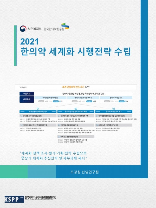한의약 세계화 시행전략 수립 관련링크 페이지 정보 작성일22-03-03 13:13 조회5,113회 본문 한의약 정책의 글로벌 역량 강화를 위한 정책 조사 및 대안 제시 이전글 다음글 목록